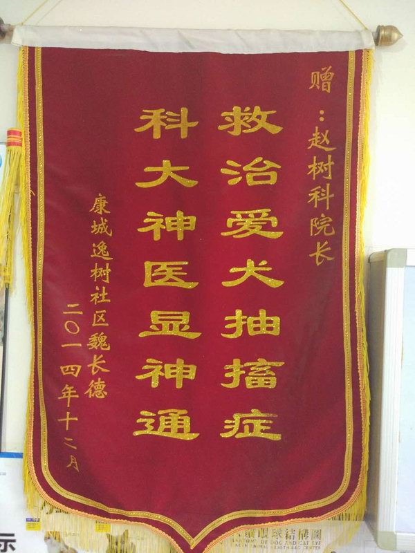 2014年12月,一只古牧犬出現(xiàn)抽搐癥,每天8次以上,經(jīng)過一周治療痊愈,***今無復發(fā)。