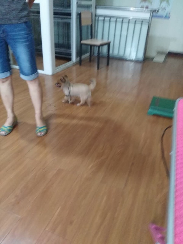 中和花園博美,豆豆,9歲,患多發性神經炎,兩前肢腕關節彎曲不能伸直,兩后肢伸直,不能站立,觸摸尖叫聲。