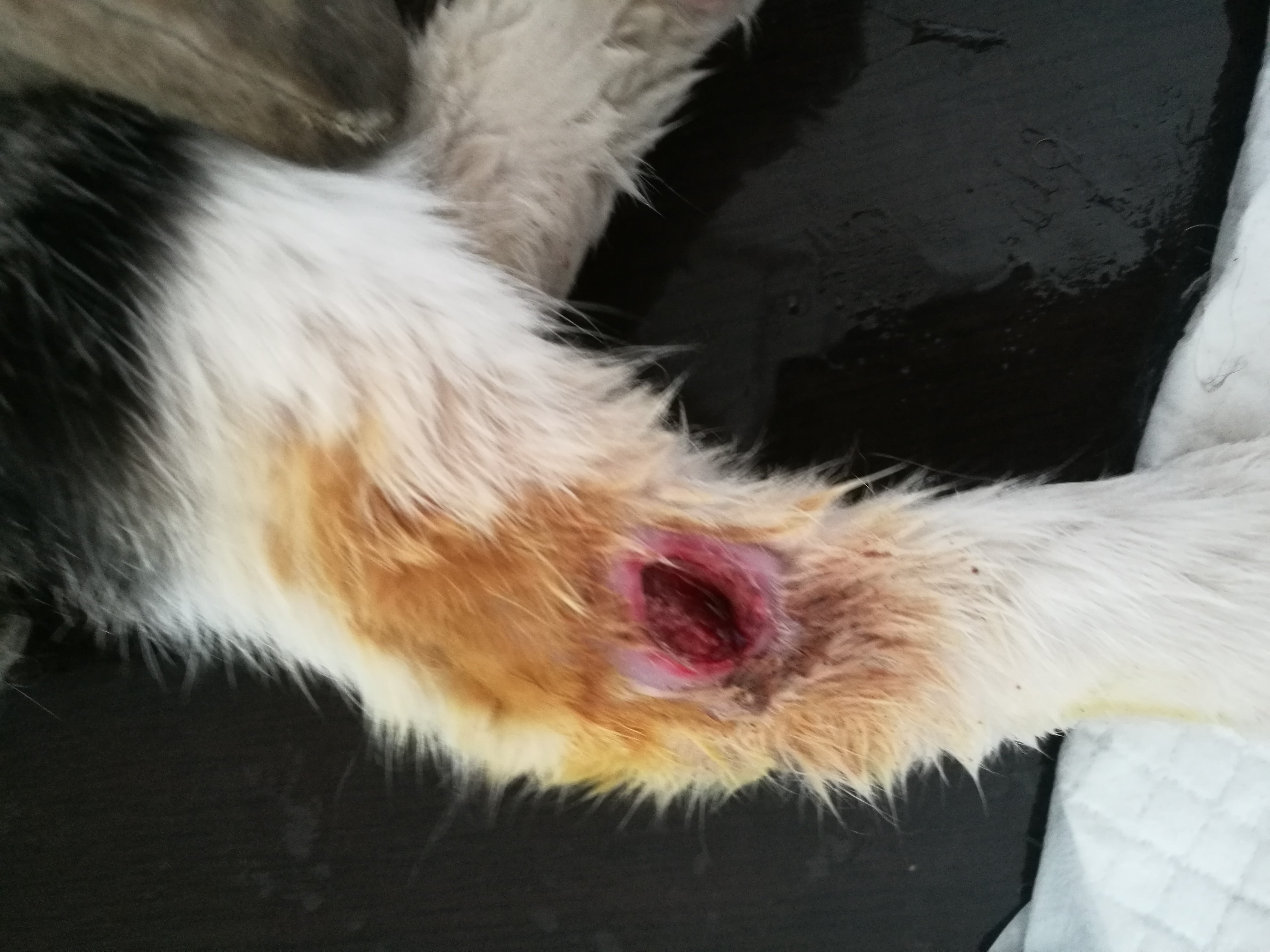 流浪的小虎平常被愛心人士劉醫生救助飼喂,有天發現小虎右腿不能著地,送來我院經檢查發現小虎右腿膝關節有一處潰瘍感染嚴重,右腿腫脹,刺破發現里面大量膿液。小虎經過幾次治療現已痊愈。